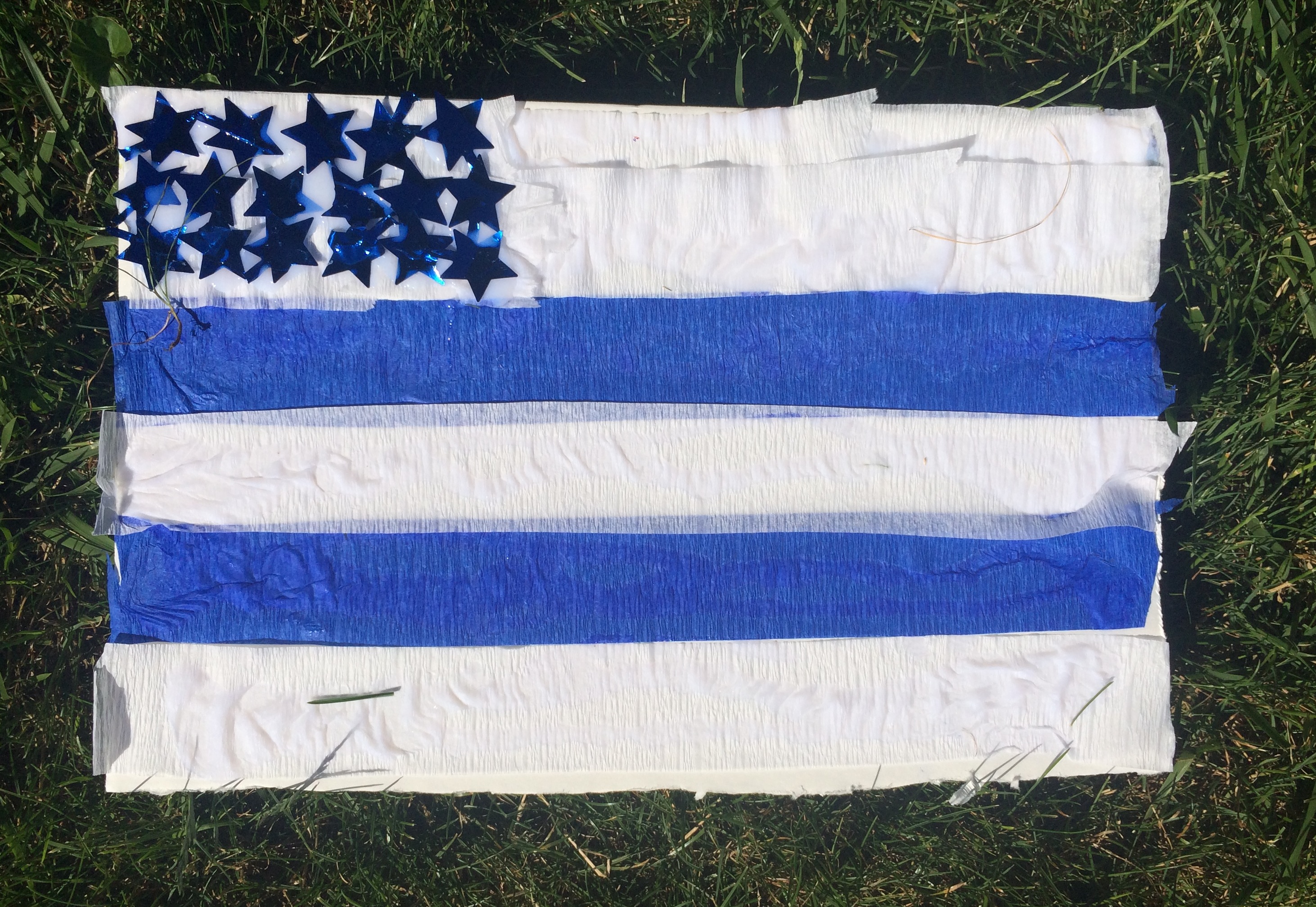 First, Have children use the streamers to create the stripes on the flag. When I did this activity some of the kids looked at an American flag to get an idea of how they wanted to make their flag. Others just made their flag however they wanted.
