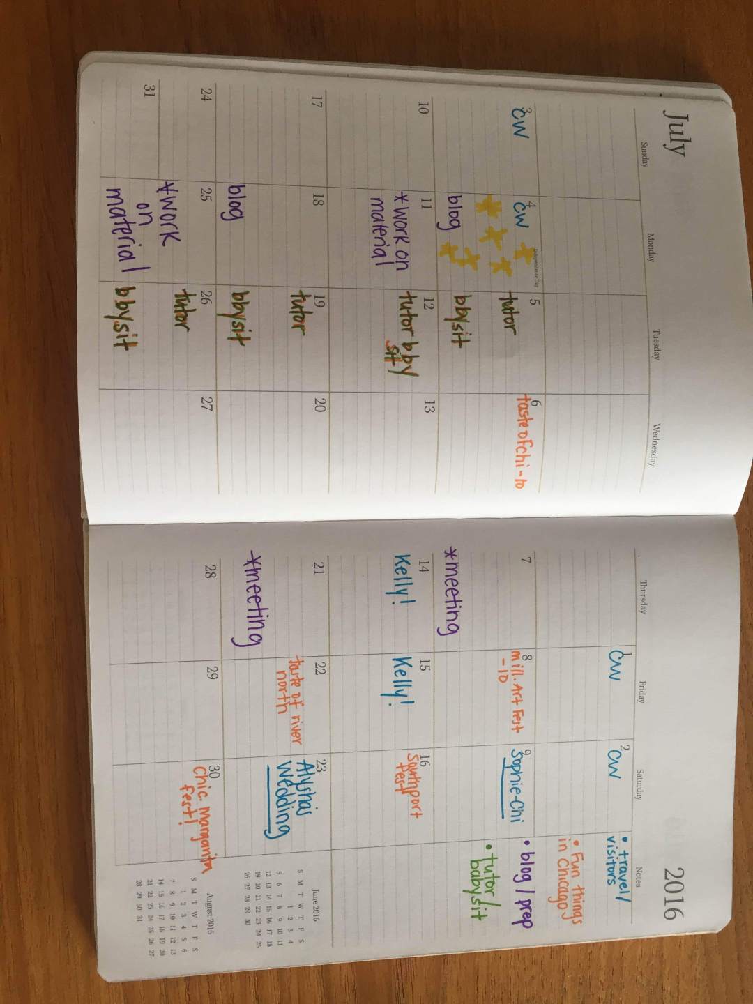As the first month of summer settles down, many of us are starting to think about next year and how to manage our time during break. It can be difficult to balance obligations, vacations, maybe a summer job, personal time, and work you want to get done for the up and coming school year. As much as it’s called a break, much of our time is already filled up! Managing all of this can be really difficult and the only way I am most effective is by having a monthly agenda and a consistent weekly schedule (when possible).