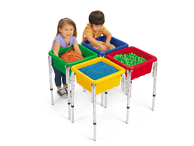 The sensory table we use in our classroom is the four tub set from lakeshore learning. Currently it is filled with magnetic sand, small balls, spaghetti strips, and ABC manipulatives. You can change the manipulative based on your unit theme. The kids absolute loving going to this center!